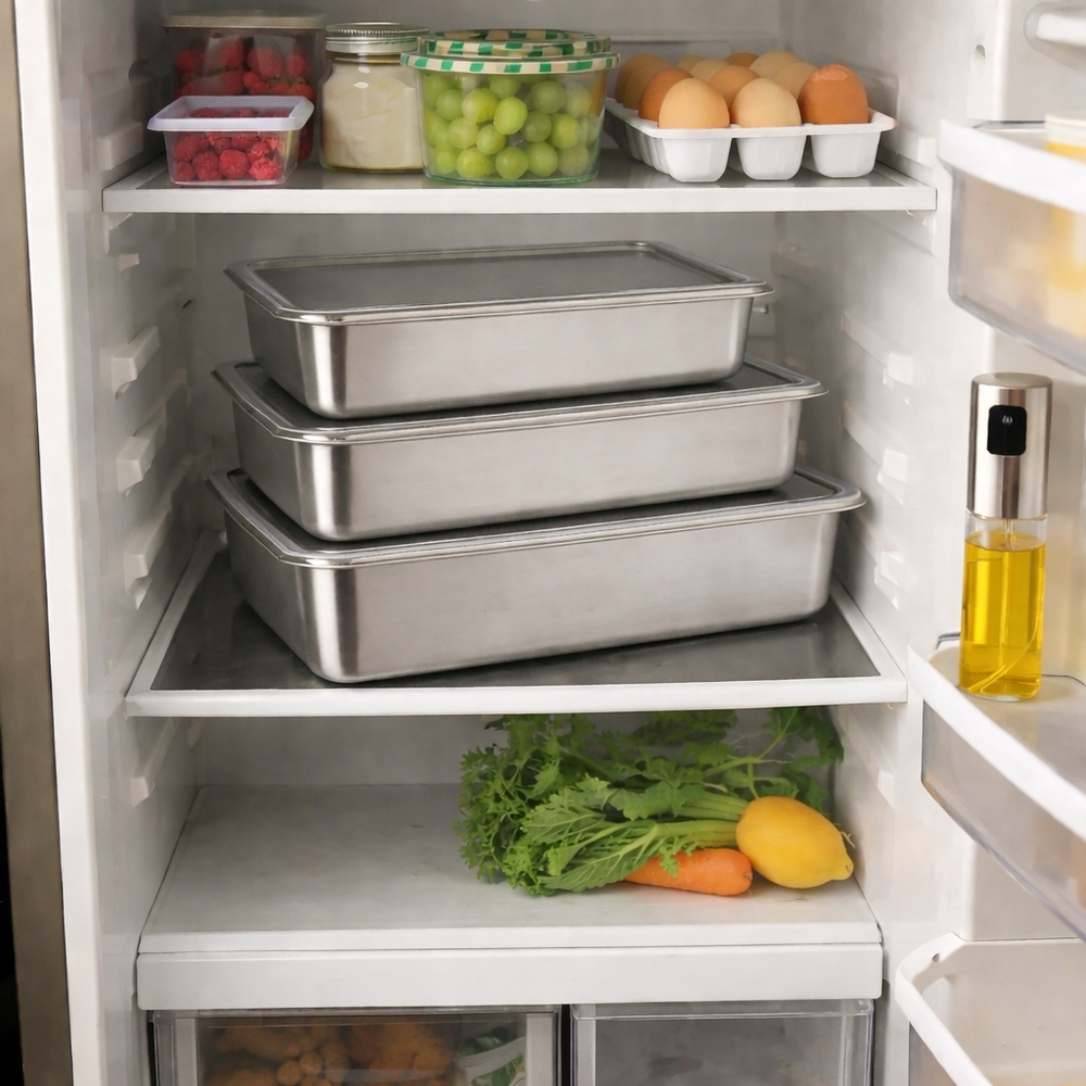 "Horneo y guardo en la misma fuente. Apiladas queda todo ordenado, cero olor en heladera."
